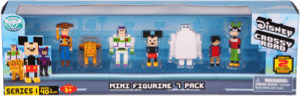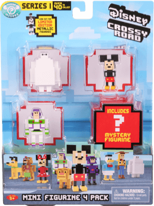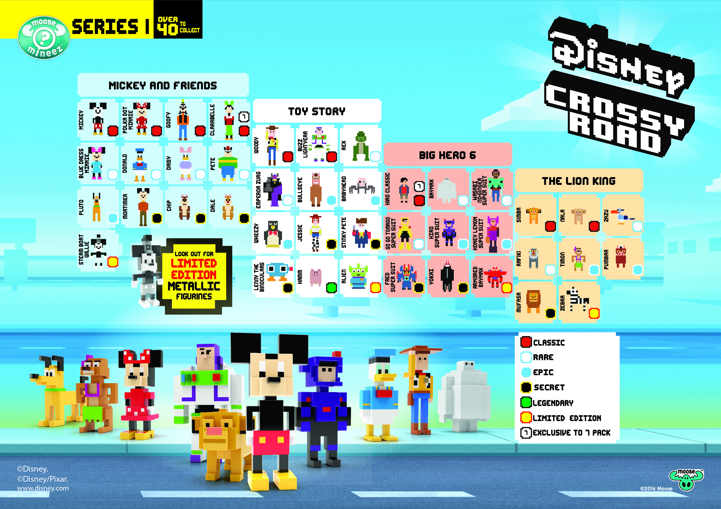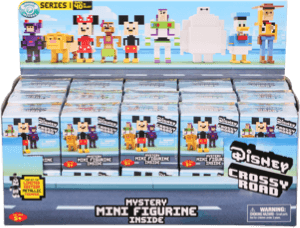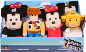 Based on characters from the hit game Disney Crossy Road, you can collect, swap and play with a full range of 8-bit pixel style collectibles, plush and keychains! With Series 1 consisting of characters from Mickey Mouse and Friends, Toy Story, Big Hero 6 and The Lion King, the chase is on to collect all of the Disney and Pixar characters from the range!